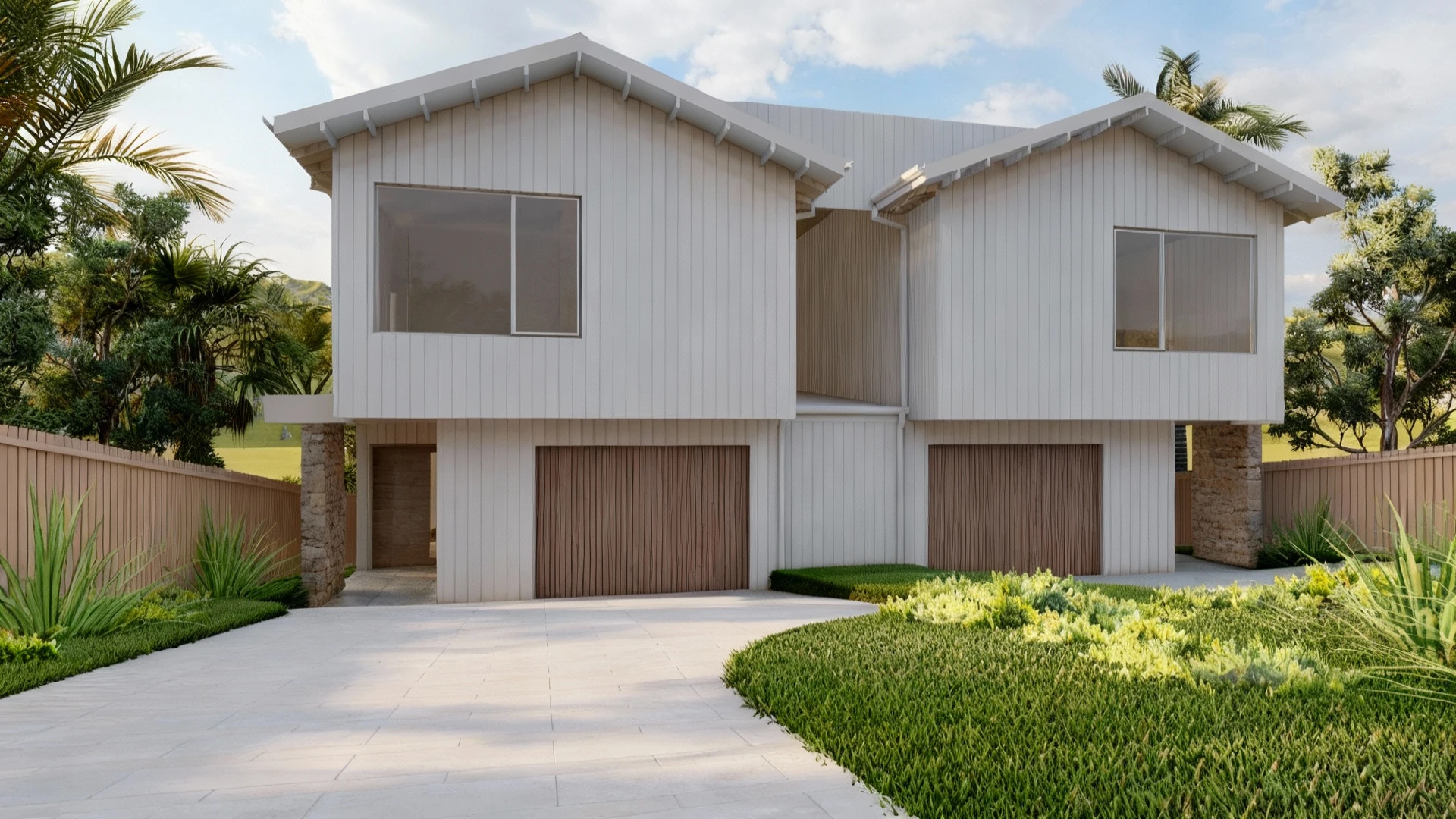 Cala introduces a fresh coastal presence to Bateau Bay, combining textured stone, soft olive cladding and warm timber detailing to create depth and character from the street. Designed as a thoughtfully resolved duplex, each residence embraces volume and light through raked ceilings, skylights and open living zones that extend effortlessly to private alfresco spaces. Cala is relaxed, grounded and quietly confident, a modern coastal home shaped for everyday living.