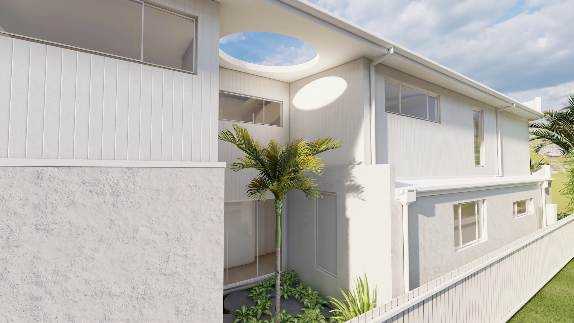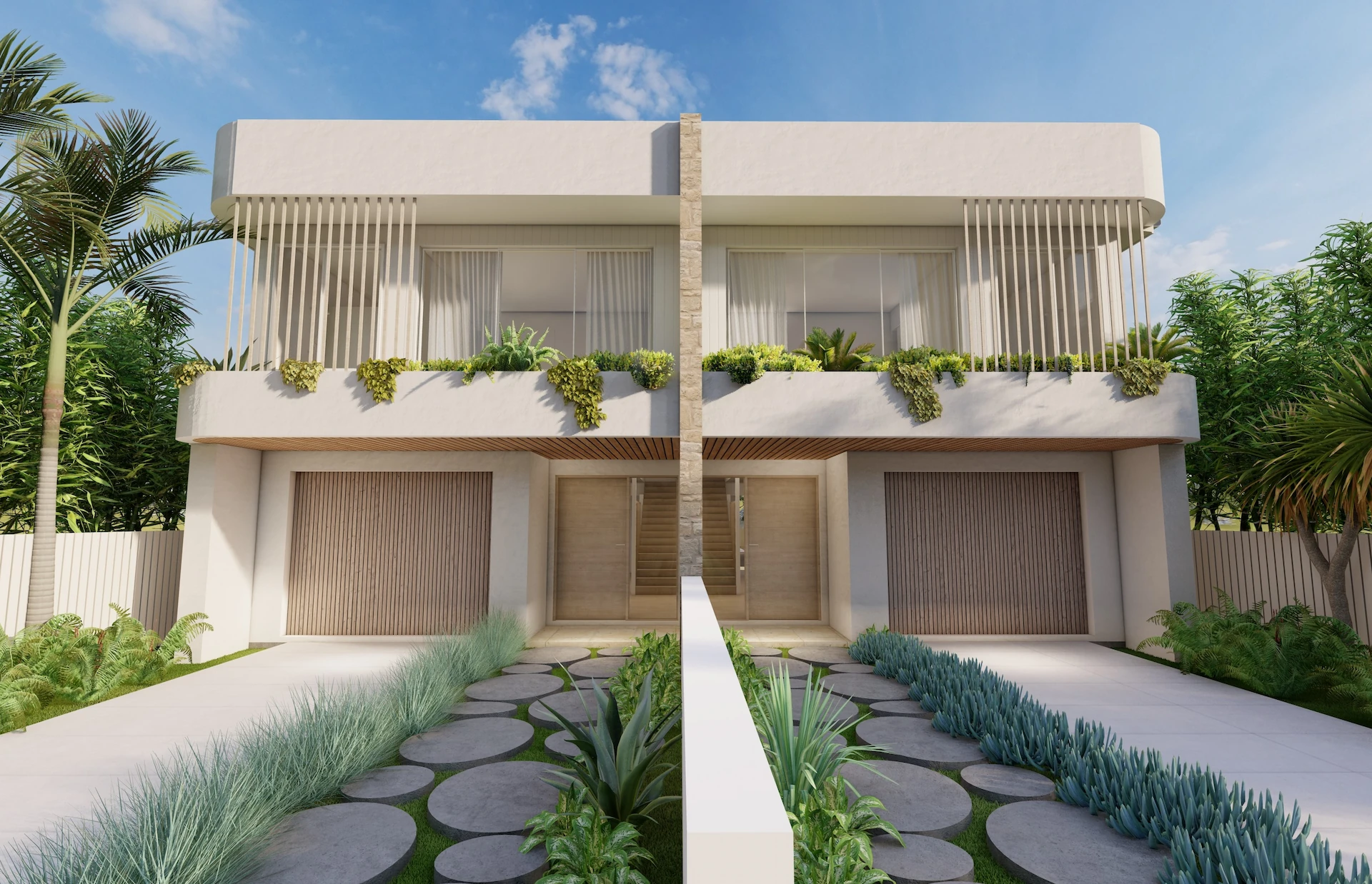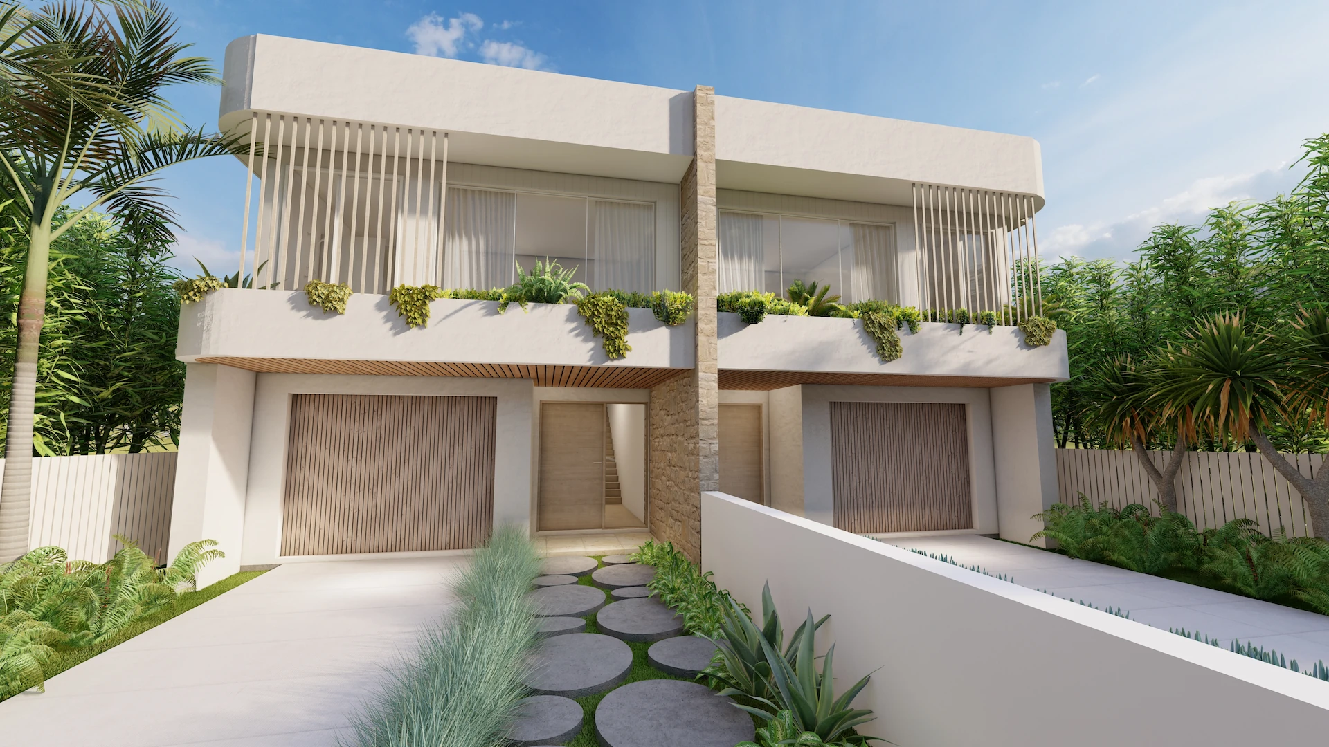 Dualis is a contemporary duplex in Long Jetty that balances symmetry with individuality. Layered stonework and refined vertical detailing give the facade a strong yet understated presence, creating depth and rhythm from the street.