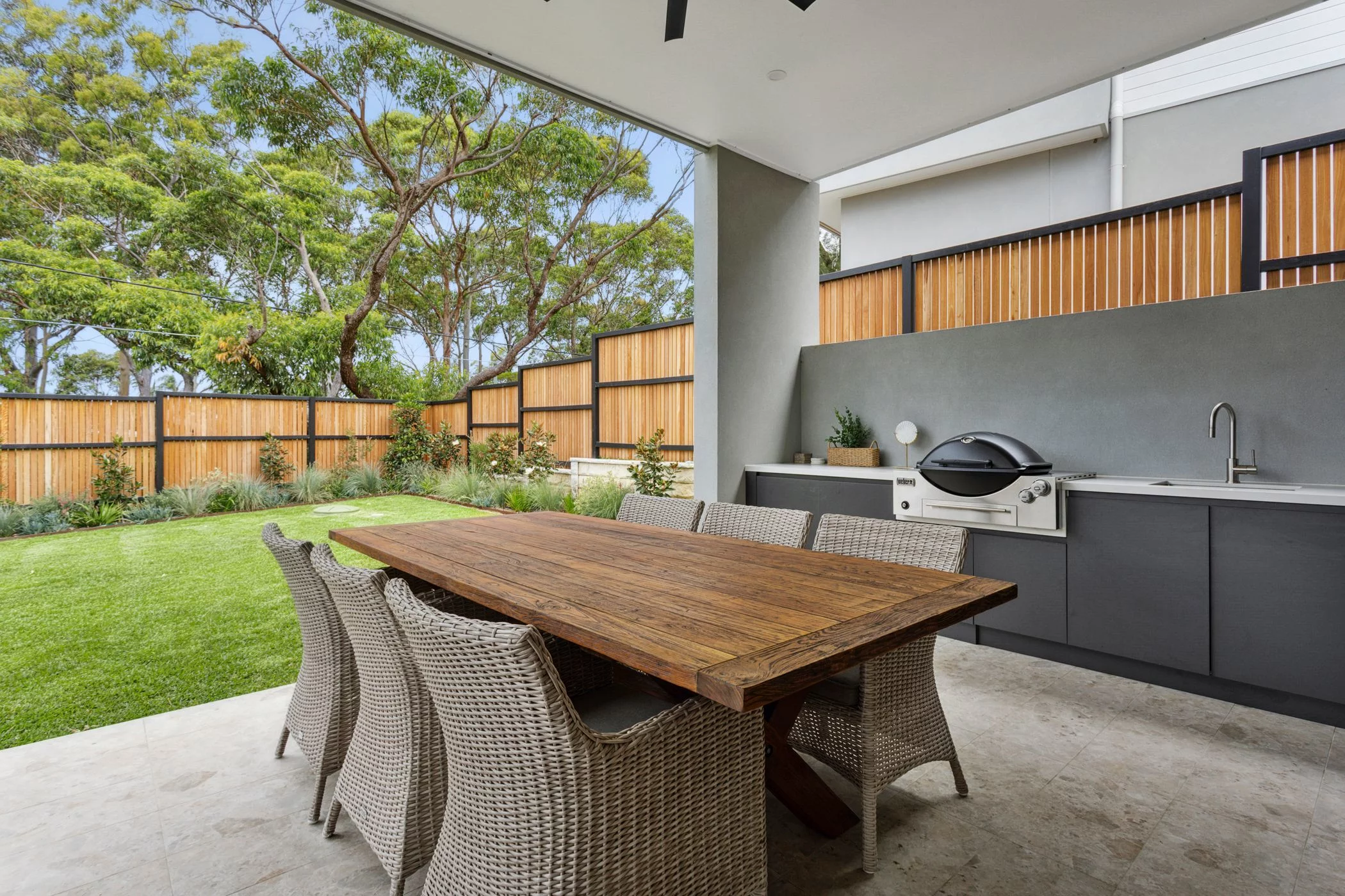 Inside, the layout prioritises connection. Living spaces open outward rather than inward, drawing attention to the backyard, alfresco and plunge pool as natural extensions of the home. The covered outdoor entertaining zone becomes a true second living area, protected, generous and designed for year round use.
